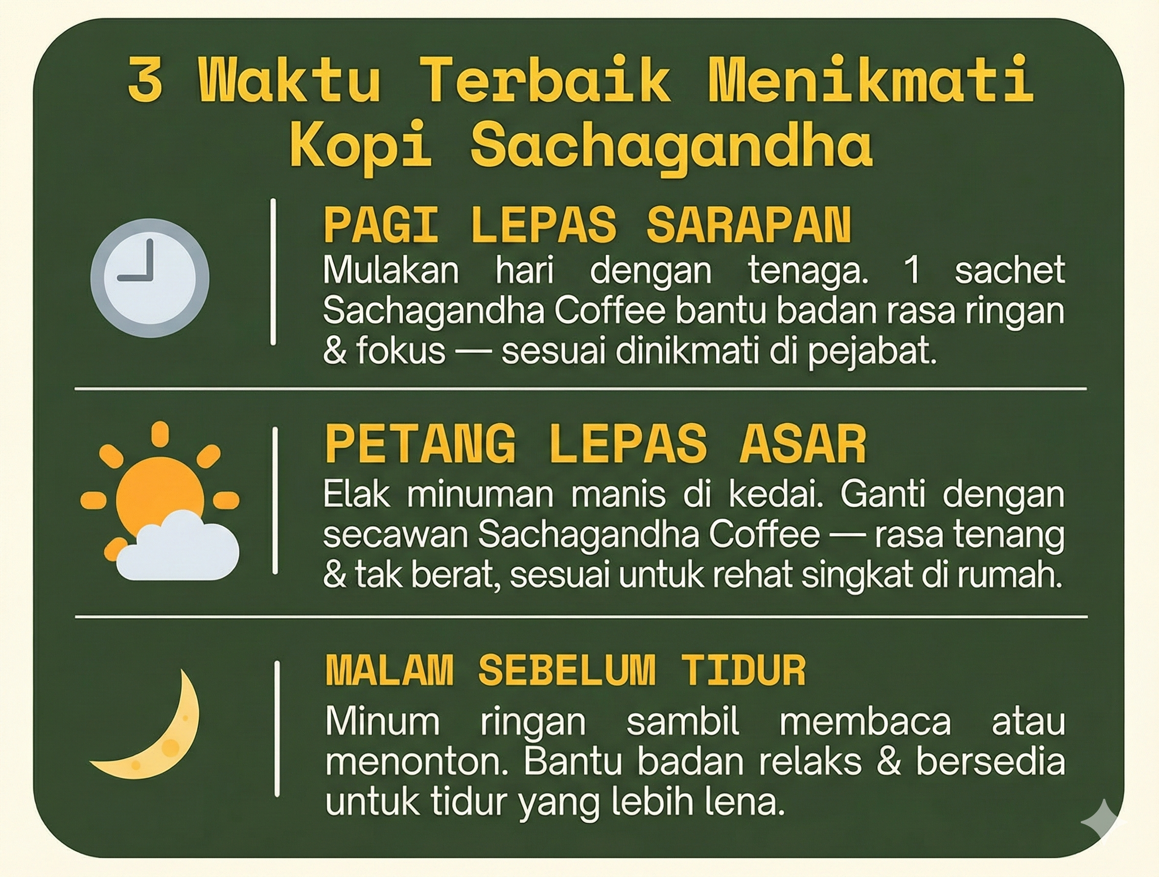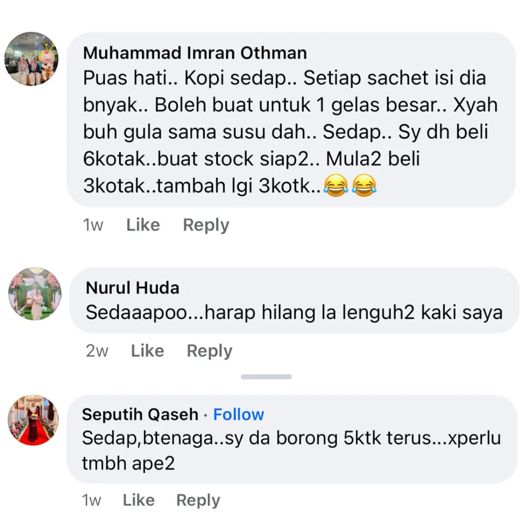 Kami pun rasa TAK LAYAK untuk terima BAYARAN jika kopi ini langsung TAK MEMBANTU anda menghilangkan masalah 3 serangkai anda.